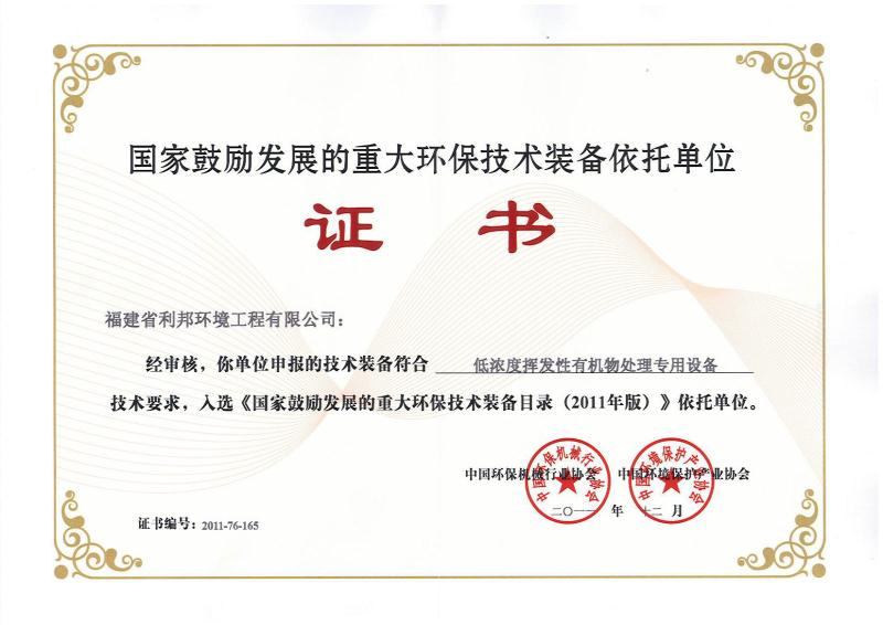 福建省科技型企業(yè)、福建省創(chuàng)新性企業(yè)、福建省首批科技小巨人、福建省“專精特新”專業(yè)化企業(yè),擁有企業(yè)研發(fā)中心、福建省有機(jī)廢氣凈化設(shè)備工程技術(shù)研發(fā)中心;公司產(chǎn)品獲得科技部、環(huán)保部、商務(wù)部、國(guó)家質(zhì)量監(jiān)督總局頒發(fā)的“國(guó)家重點(diǎn)新產(chǎn)品”證書,“中低濃度揮發(fā)性有機(jī)物回收凈化裝備”被列入《國(guó)家鼓勵(lì)發(fā)展的重大環(huán)保技術(shù)裝備目錄(2017年版)》;公司核心發(fā)明專利分別獲得了中國(guó)專利獎(jiǎng)優(yōu)秀獎(jiǎng)、福建省專利獎(jiǎng)二等獎(jiǎng)等專利獎(jiǎng)項(xiàng),其中兩個(gè)核心技術(shù)分別獲得福建省技術(shù)發(fā)明獎(jiǎng)二等獎(jiǎng)、福建省科學(xué)技術(shù)進(jìn)步獎(jiǎng)二等獎(jiǎng);公司